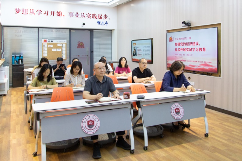 为深入贯彻落实党中央《关于在全党开展党纪学习教育的通知》精神,加强党的纪律建设,开展党风党纪教育,5月29日下午,机关第二十二党支部(信息化处支部)联合结对共建单位南通大学信息化中心党总支,通过“线上+线下”相结合的方式,共同开展党纪学习教育暨“红信大讲堂”第21讲活动。南通大学杂志社副社长、南通廉政研究中心副主任邵德进教授以《加强党的纪律建设,扎实开展党纪学习教育》为题,做主旨报告。