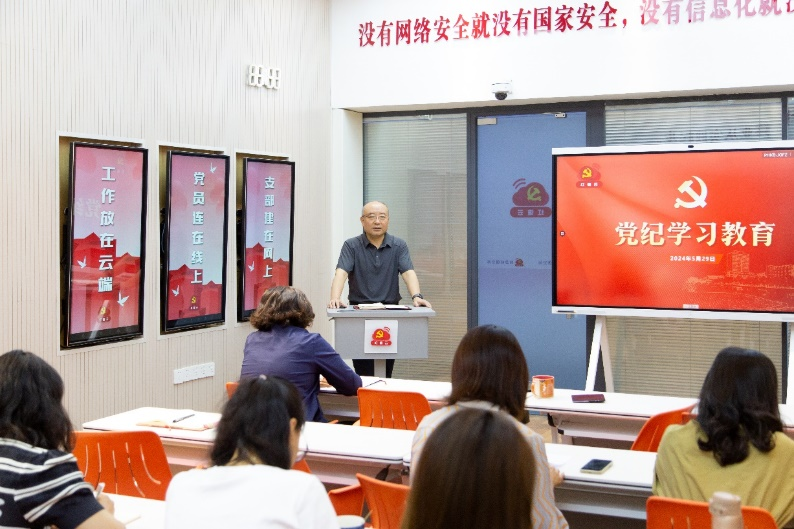 讲座结束后,信息化处支部全体党员开展党纪学习教育第二次集体学习,支部宣传委员郝之楹和党小组长李伶分别领学了《条例》第四、五章,并对有关内容进行解读。支部书记宋子强再次强调了加强党的纪律建设的重要性,要把党纪学习教育作为重要政治任务,作为样板党支部创建单位更要以更高的标准要求自己,充分发挥党员先锋模范作用。