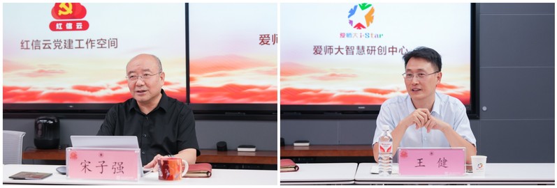 宋子强对徐工院信息学院一行的到来表示热烈欢迎,简要介绍了信息化处及其党支部的基本情况,分享了“红信云”党建工作空间的建设思路、经验和体会。他指出“红信云”不仅是党建工作空间,还是智慧研创空间,是信息化处支部党建与业务深度融合的重要成果,信息化处支部依托“红信云”开展了形式多样、丰富多彩的系列活动,有效发挥了支部的战斗堡垒作用。他还介绍了我校持续深入探索的数字党建新模式——“支部在线”智慧党建信息系统的设计开发,以及坚持问题导向,着重以信息化建设“伴随式数据采集”理念打通高校基层党建“最后一公里”的具体做法。最后,围绕智慧校园建设,介绍了我校基于腾讯企业微信私有化部署打造的 “爱师大i-Star” 移动校园,以及提供“红信云”和“爱师大”党建与业务双品牌发展的实践经验,分享了“党建引领信息化发展,信息化助力党建工作方法创新”促进党建与业务深度融合的重要理念和具体做法。